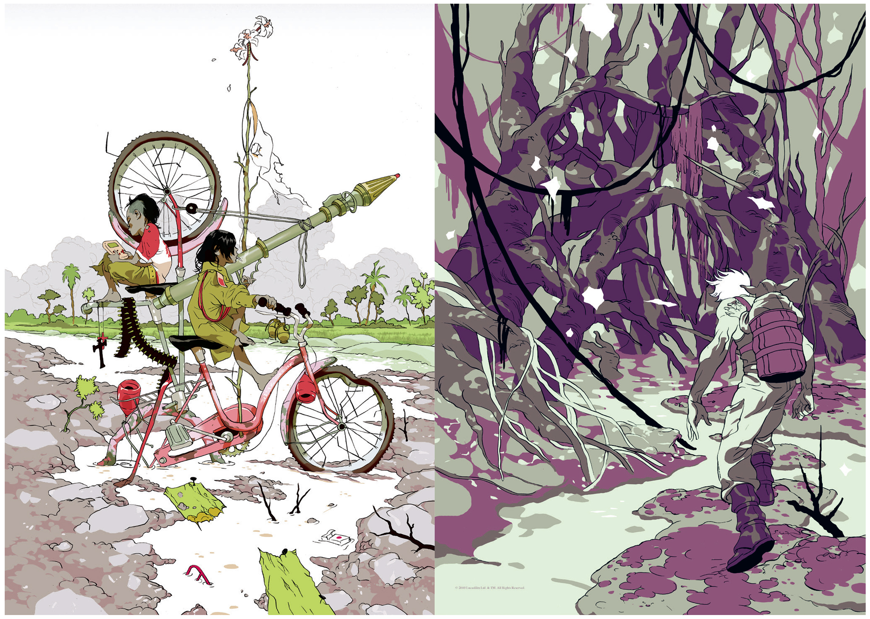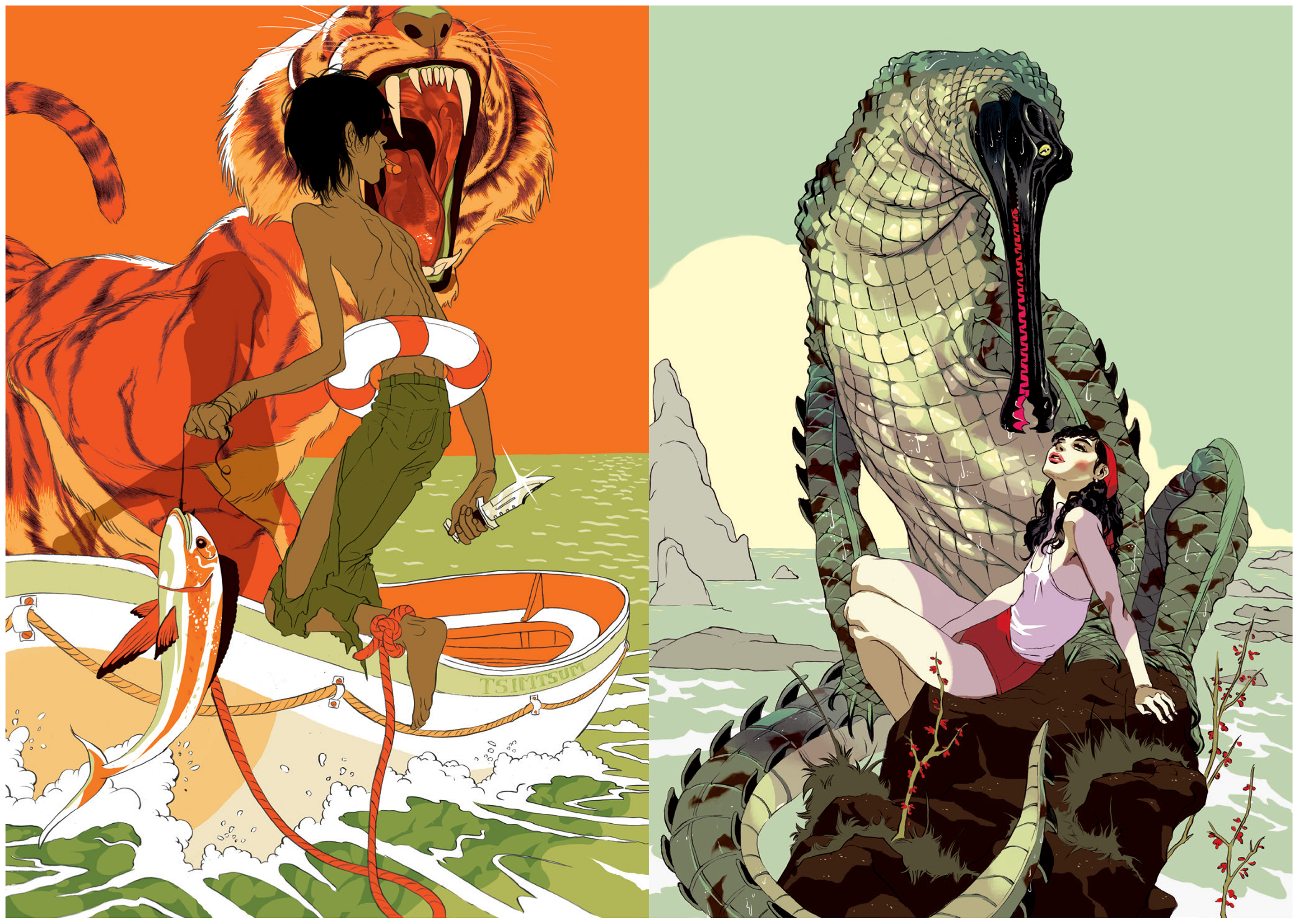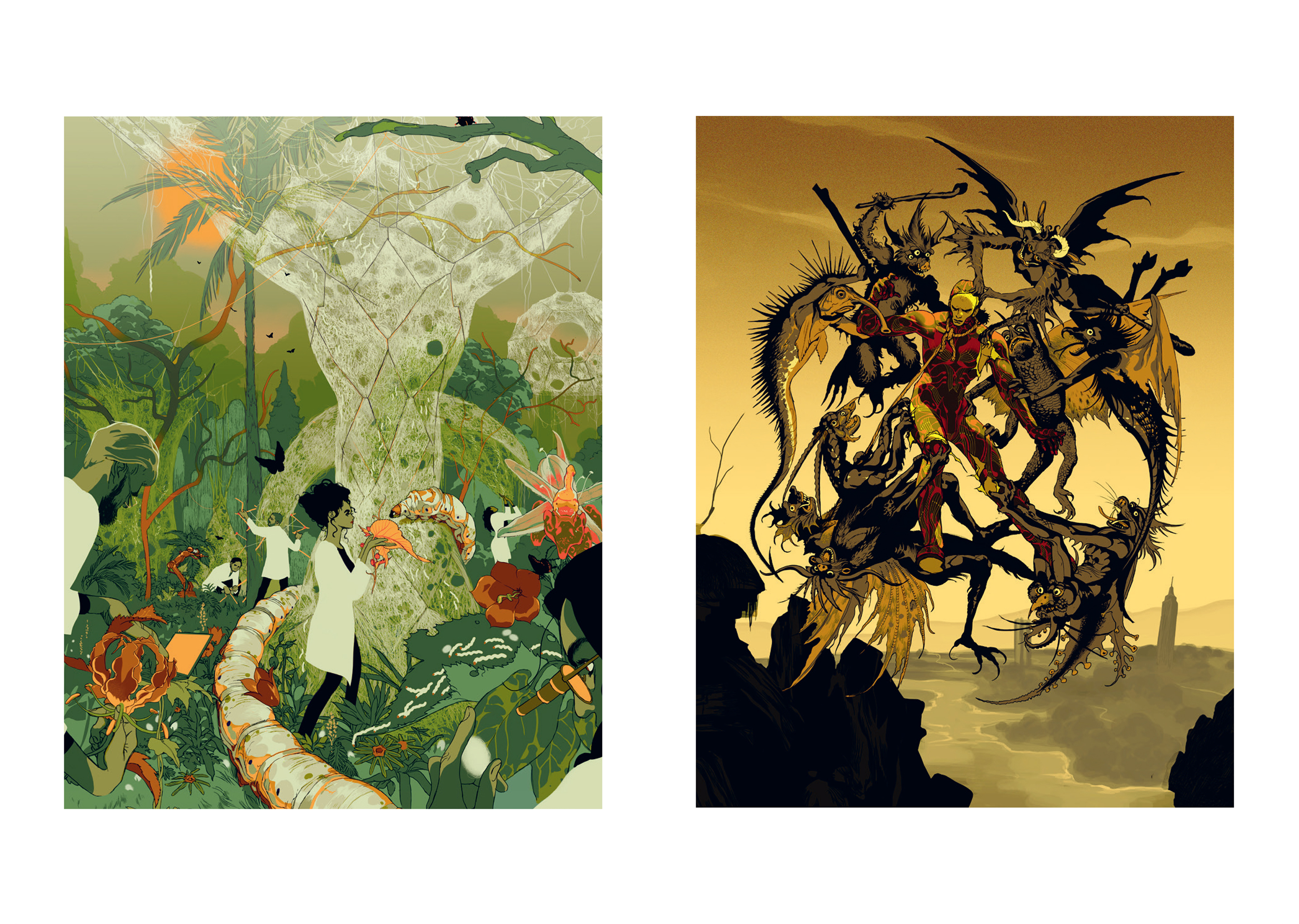 Tomer Hanuka is a NY Times best-selling artist and an award-winning illustrator based in New York City. His new monograph, Unknown Pleasures, collects both commissioned work and self-initiated projects from throughout his career including: magazine covers for the New Yorker and National Geographic; poster works for the vaunted Mondo Graphics; and book covers for Random House. Instantly recognizable, Hanuka’s body of work is steeped in the visual language of comics, graphic novels and animation, yet it transcends those disciplines and easily stands on its own. The Divine, a graphic novel he co-created, made The New York Times best-seller list, was nominated for a Hugo, and won the International Manga Award. Publishers Weekly described The Divine as “Heady, hellacious, and phantasmagoric”.